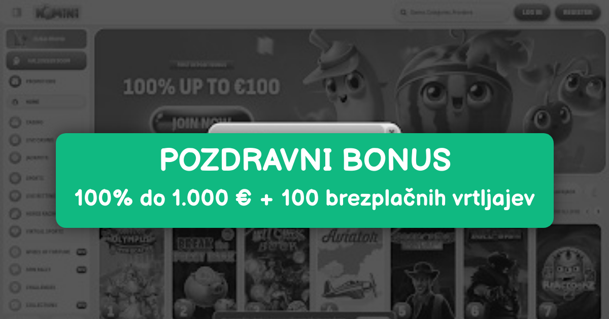 Nomini Casino predstavlja vrhunsko spletno igralnico, ki ponuja izjemno igralno izkušnjo za slovenske igralce. Dobrodošli bonus do 500€ z 100% ujemanjem vašega prvega depozita skupaj s 100 brezplačnimi vrtljaji vas čaka takoj ob registraciji. Naša igralnica deluje z veljavno licenco in zagotavlja varno ter pošteno igranje. Uživajte v hitnih izplačilih v 24 urah in 24/7 podpori v slovenskem jeziku. Na voljo je več kot 3000 iger, vključno z najnovejšimi online igralnimi avtomati z jackpoti, živimi casino igrami z resničnimi krupijerji ter klasičnimi namiznimi igrami. Sodelujemo z vodilnimi ponudniki programske opreme kot so NetEnt, Pragmatic Play in Evolution Gaming. Mobilna različica omogoča igranje kjerkoli in kadarkoli preko telefona ali tablice. Za depozite in dvige sredstev uporabljajte priljubljene načine plačila, vključno s kreditnimi karticami, e-denarnicami in bančnimi nakazili, vse optimizirano za slovenski trg.
